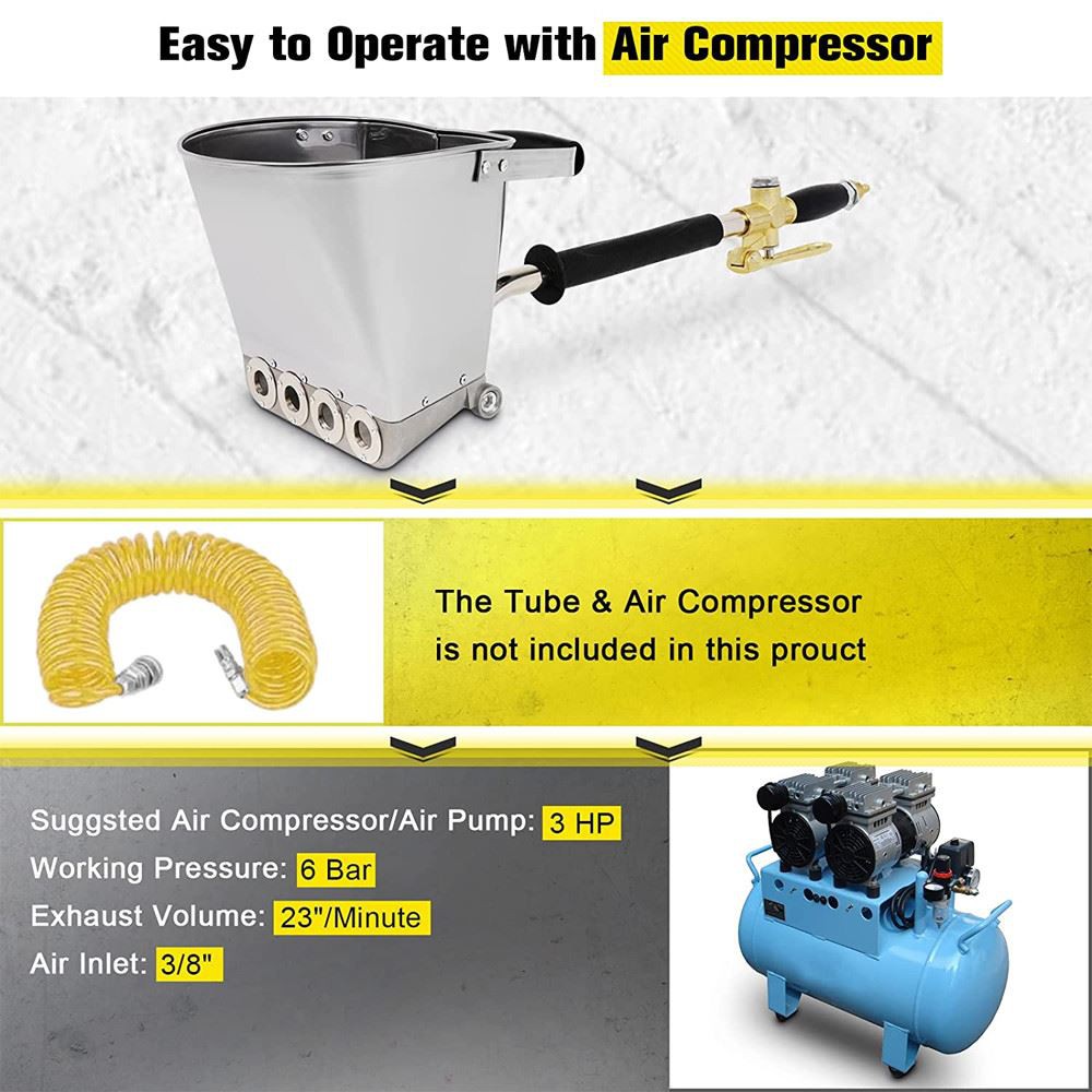 ▶ Hyödyllinen stukkosuihkutussuppilopistooli stukkitalon rappaukseen.